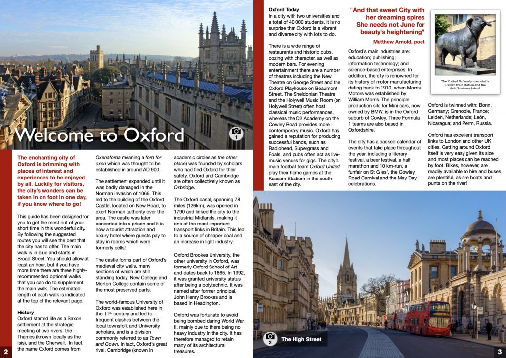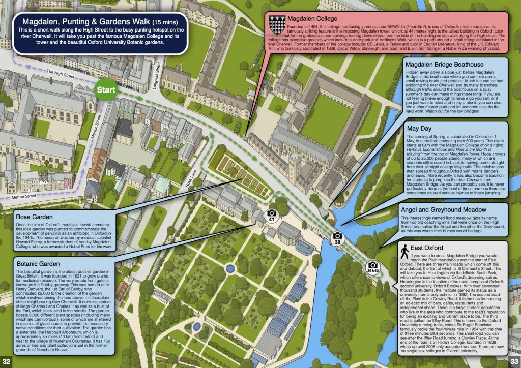 The most important thing for me was that a guidebook should be very visual, basically following a map, with the interesting information available as you are navigating the city, following a route that will give you a balanced picture of the city in the shortest time. That’s basically the whole philosophy behind what became ‘A Day in Oxford’.